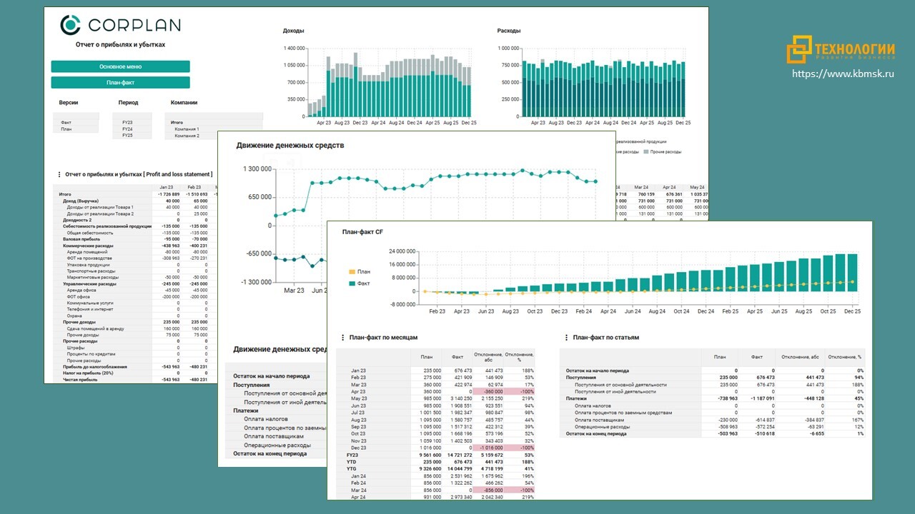 CPM Corplan имеет встроенную функцию BI (не нужно покупать отдельно) собирает и обрабатывает большие массивы данных из разных источников, а затем показывает на одном экране в виде наглядных таблиц, графиков и схем. Это помогает увидеть проблемы и тенденции в бизнесе. Такие находки становятся основой для бизнес-решений.